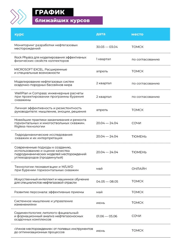 Предлагаем ознакомиться с графиком ближайших курсов Академии Инжиниринга Нефтяных и Газовых Месторождений на 2026 год