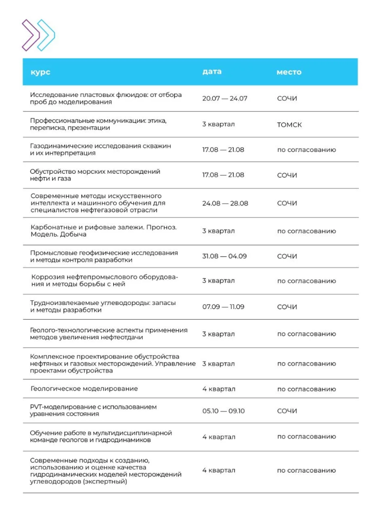| Комплексное проектирование обустройства нефтяных и газовых месторождений. Управление проектами обустройства | 3 квартал | По согласованию |